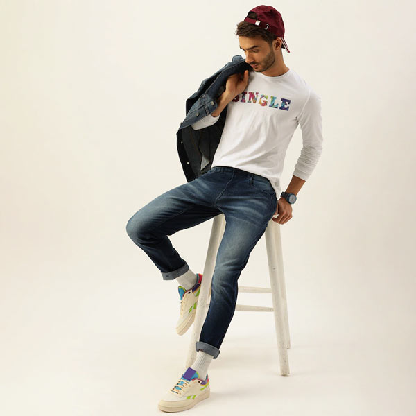 Men White Printed Pure Cotton Slim Fit T-shirt