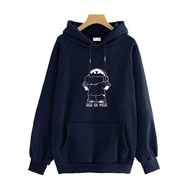 HIGH ON MUSIC - SHINCHAN PRINTED COTTON, Sweatshirt Hoodie.Material: 100% COTTON SWEATSHIRT; -Best suitable for winter season, cool places, inner fleece material.