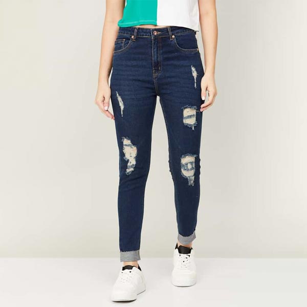 Highlighted with distressed detailing, this pair of straight-fit jeans features a belt loop waist and a five-pocket design. DISCLAIMER: Please check the size guide before you buy. You may need one size bigger than other popular brands. (If you usually fit into Size S of other popular brands you may need Size M)