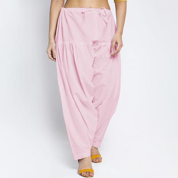 • A pair of pink solid regular-fit salwar with gathered detail, has an elasticated waistband, and drawstring closure