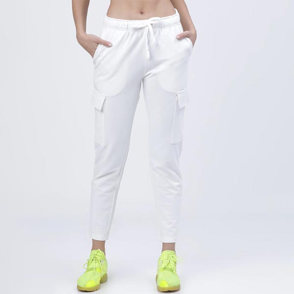 Women White Solid Slim-Fit Cargo Track Pants